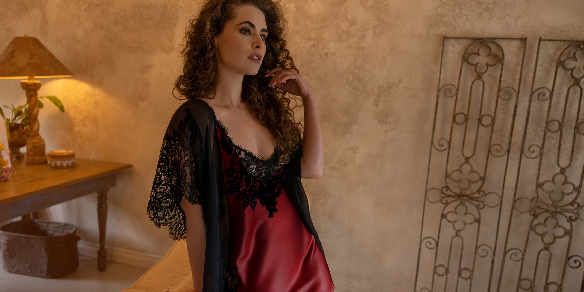 Chantilly lace adorns the bust and hem, framing a luxurious 19mm silk charmeuse base that flatters the body. A handmade silk rosette, a Christine signature, is the perfect finishing touch for this lovely chemise.
