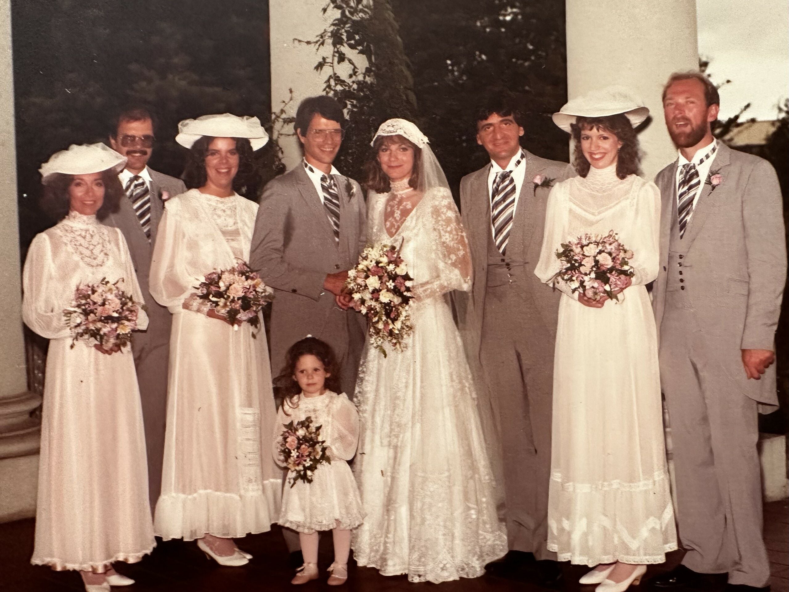 Her foray into bridalwear began with her own wedding in 1983 to David Farris when she designed her gown, along with Edwardian-inspired dresses for her three bridesmaids and a flower girl. A random call from a woman in Toronto offering a garage-full of lace and appliques from the 1920s and 30s, along with rolls of machine lace and pearl buttons ensured she had the material she needed to produce unique, one-of-a-kind gowns.