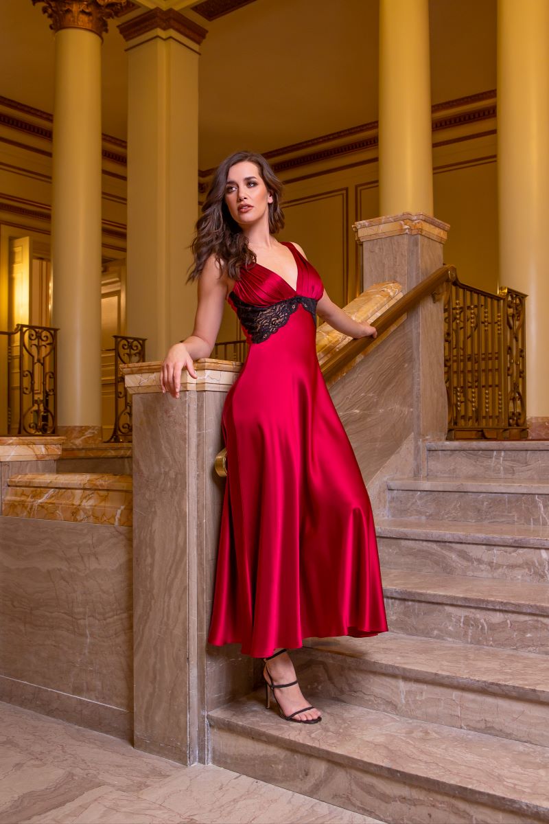 Reminiscent of Hollywood starlets, this beautiful gown is a favourite. Available here in our timeless classic colours. This pure silk charmeuse is pleated over the bust to allow a fantastic fit for a full cup but also to flatter a smaller busted woman. The French stretch lace under the bust adds support and beauty. Adjustable straps.