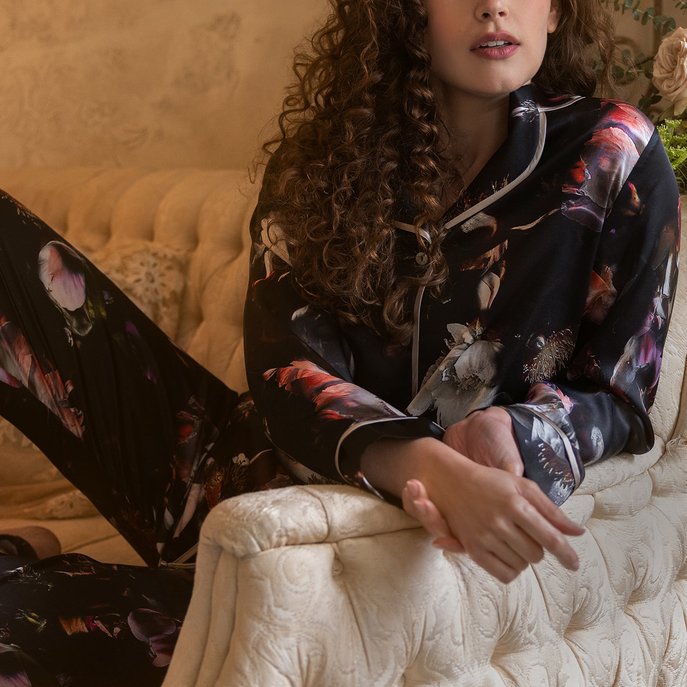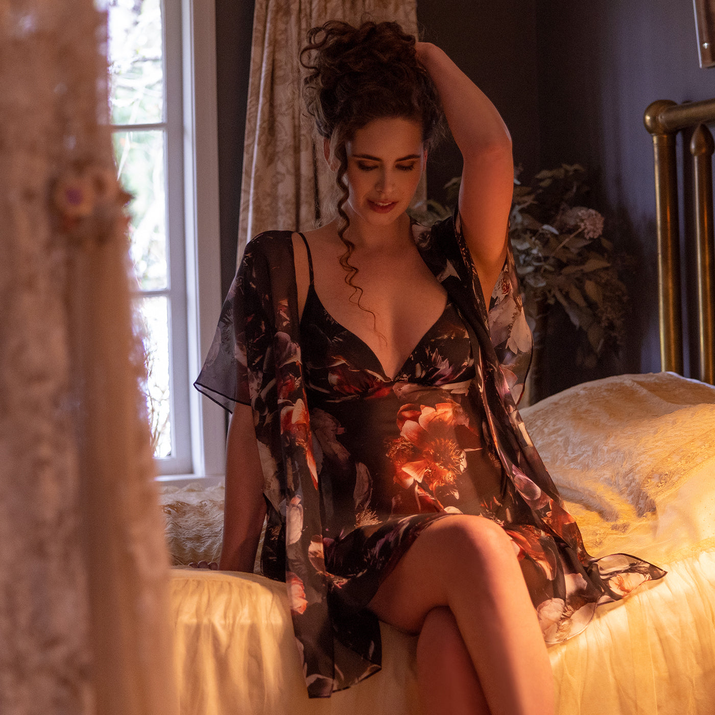 Silk lingerie crafted in our exclusive Italian silk print chiffon, as light as the florals blooming on the Moonlight print.