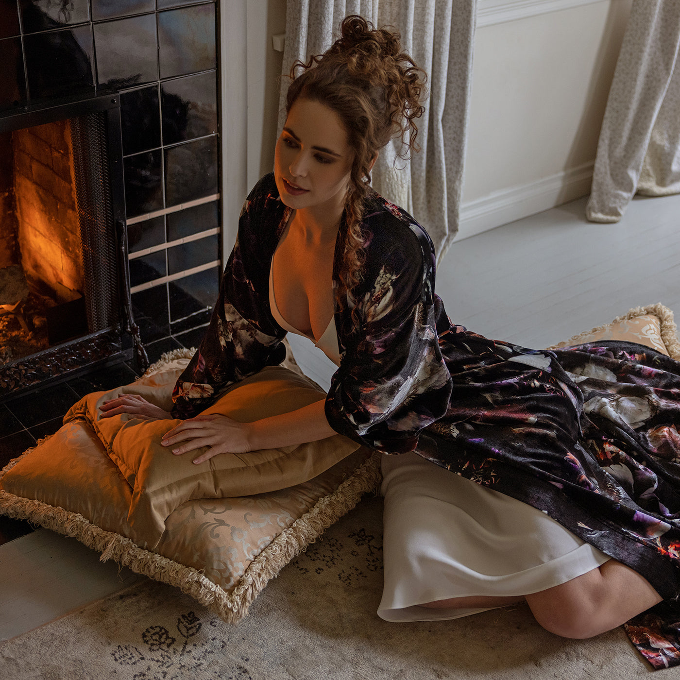 Lounging done in lavish Italian silk print velvet. Plush and soft, perfect for cold seasons.